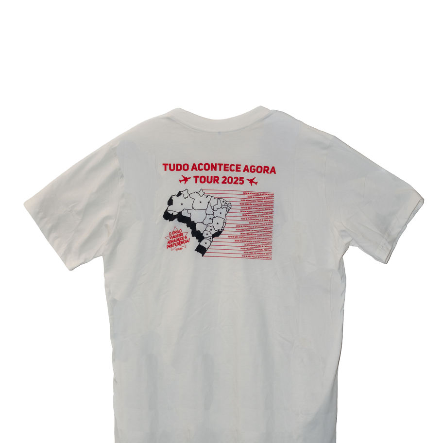 Camiseta edição limitada da segunda parte daTour Tudo Acontece Agora.